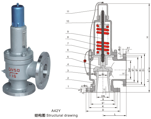 彈簧全啟封閉式安全閥(碳鋼安全閥)適用于工作溫度≤300℃空氣、石油氣、液體等介質(zhì)的設(shè)備和管路上。A42Y-P型及A42Y-R型(不銹鋼安全閥)適用于工作溫度≤200℃有腐蝕性的介質(zhì)的設(shè)備和管路上,作