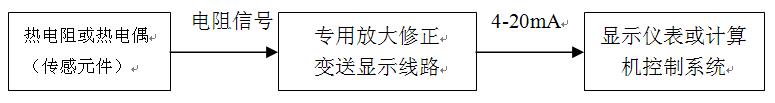 ZW-SBWR/Z系列一體化智能溫度變送器對于測溫元件為鉑熱電阻或銅熱電阻的變送器,其線路由測量、放大、整形、調(diào)整和信號轉(zhuǎn)換等幾部分組成。在被測介質(zhì)的溫度發(fā)生變化時,測溫元件的電阻值將發(fā) 生相應(yīng)的變化,此變化經(jīng)測量線路轉(zhuǎn)換為電信號,在經(jīng)高穩(wěn)定性運算放大器放大,線形化校正電路進行準確的線形補償,輸出一個與被測溫度成線形關(guān)系的 4-20mADC電流信號。對于測溫元件為熱電偶的變送器,其線路組成除此幾部分外,還具有冷端補償電路。
