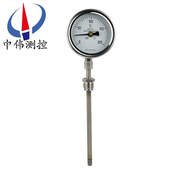 不銹鋼雙金屬溫度計是一種適合測量中、低溫的現場檢測儀表,可用來直接測量氣體、液體、和蒸汽的溫度。該溫度計從設計原理及結構上具有防水、防腐蝕、隔爆、耐震動、直觀、易讀數、無***害、堅固耐用等特點。其保護管、節頭、鎖緊螺栓等均采用不銹鋼材料,表殼采用鋁板拉伸成型經切削加工表面黑色電泳處理,表蓋與表盒采用環型雙層橡膠圈螺紋密封結構,故儀表整體防水防腐性能******,采用彎管型結構,外型新穎、輕巧、美觀與眾不同。