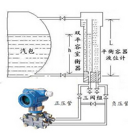 2.系統工作時(鍋爐汽有液位):在確保正負壓室充滿冷凝水的前提下,關閉平衡閥,打開正負相閥,同時關閉雙室的汽液相閥門.