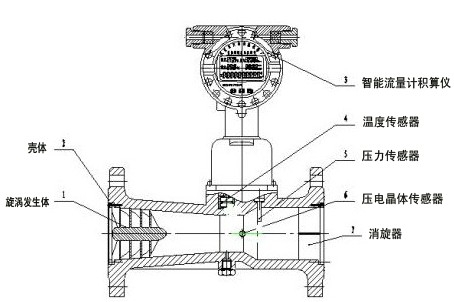 檢測元件安裝在靠近擴張管的喉部,用熱敏、壓電、應變、電容或光纖等檢測元件可測出旋渦進動的頻率信號。